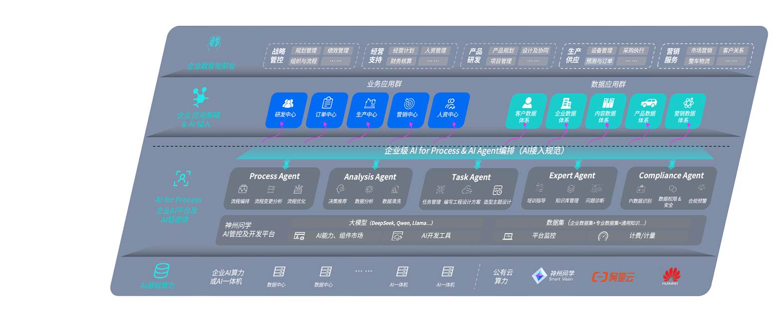 端到端的一站式AI工作空间深度融合了从企业战略规划到日常经营的全流程业务板块,,定向解决车企内部领域多、、、、部门多、、链条长、、、、场景碎片化等难题,,支持车企快速构建以AI为核心的生产力写作体系,,,实现任务执行与AI能力的无缝集成与交互