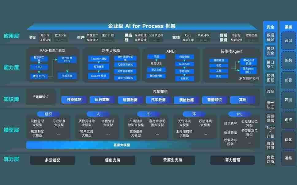 狗子28问学智车解决方案是一套基于AI技术的汽车行业智能化系统,,覆盖从底层算力到顶层AI应用的全栈方案。。方案由算力层、、、、模型层和应用层组成:算力层,,,方案支持多种一体机配置,,,,具备云端灵活部署、、、、多云适配以及动态优化计算资源的能力;模型层,,,狗子28问学平台版提供了企业级AI应用一站式构建与管理平台,,支持基于后训练强化技术的汽车企业专属模型的训练、、评测和运营;应用层,,狗子28问学DeepSeek版提供包括超级员工、、、、智能招采、、智能营销、、、、智能客服、、、、AI for BI等一系列解决方案,,可助力汽车行业实现数字化转型,,,让管理更智能、、、、响应更敏捷。。。